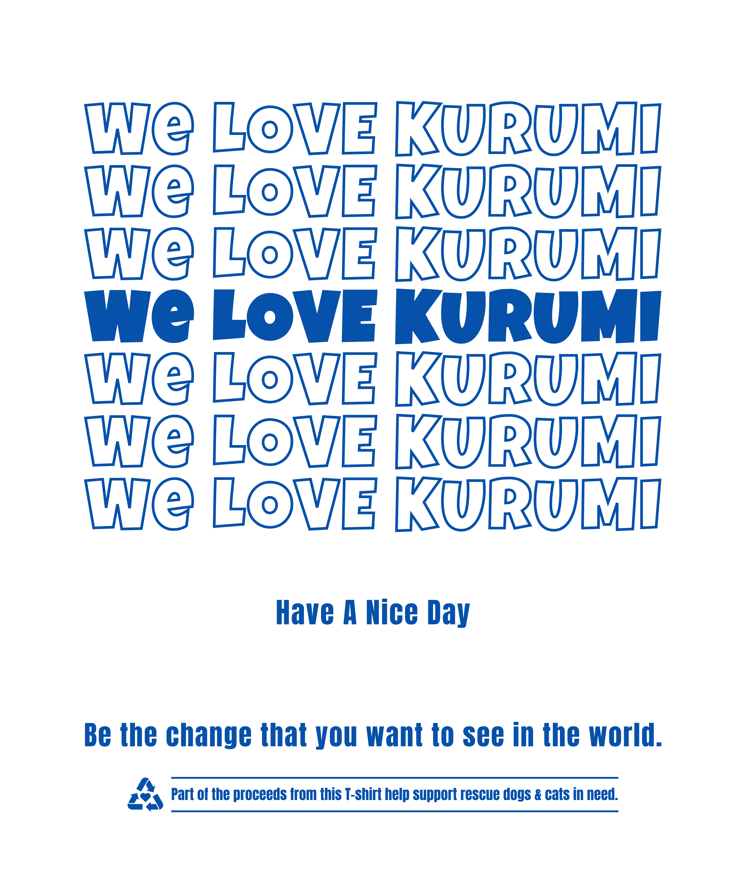 ハートを囲んだリサイクルマークは、購入者・保護団体・We LOVE KURUMI、3者のつながりを表現しています。